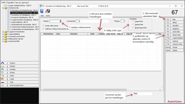 Autovision kan danne en et indkøbsforslag automatisk, baseret på de informationer der er gemt på hver enkelt varenummer i Lager-vedligeholdelsen.